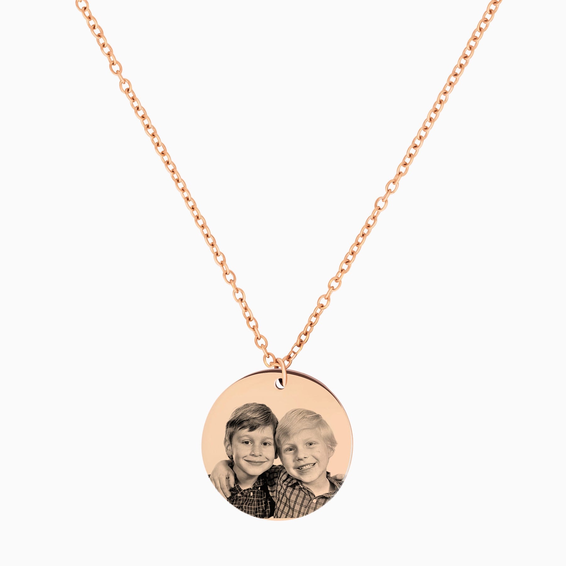 Keep a special person or your loyal four-legged friend close to you at all times. This high-quality necklace with a round pendant is engraved with your desired photo in detail. The result is a noble, durable keepsake that accompanies you everywhere.