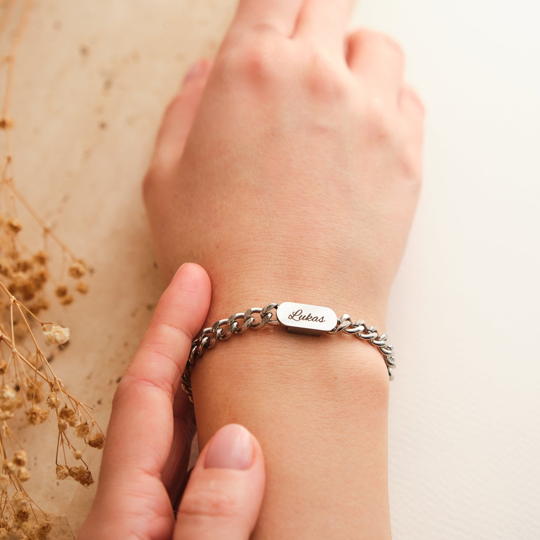 If jewelry is not just an accessory but a unique piece, this bracelet is the right choice. With our personalized Couple bracelet, your personal style comes to the fore. The bracelet can be customized with a name, word, or date and would be your unique fashion jewelry. The perfect piece of jewelry for all individualists but also as a creative gift, which stands out ideally with every outfit - whether sporty or elegant.
