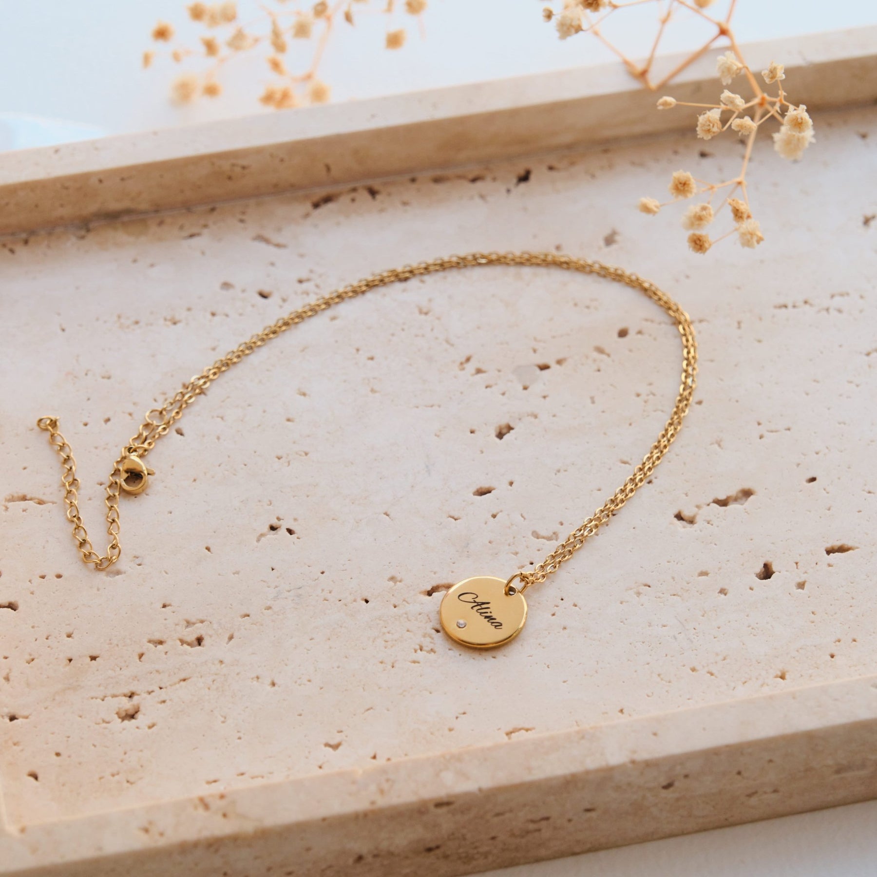 Available in gold, silver, and rose gold colors, this personalized necklace impresses with its clean lines and subtle design, making it the ideal accessory for any casual outfit. The date engraving on the initial necklace makes it a wonderful present to highlight a significant day in a loved one's life. If there is a day you always want to remember, why not add it to your own jewelry collection?